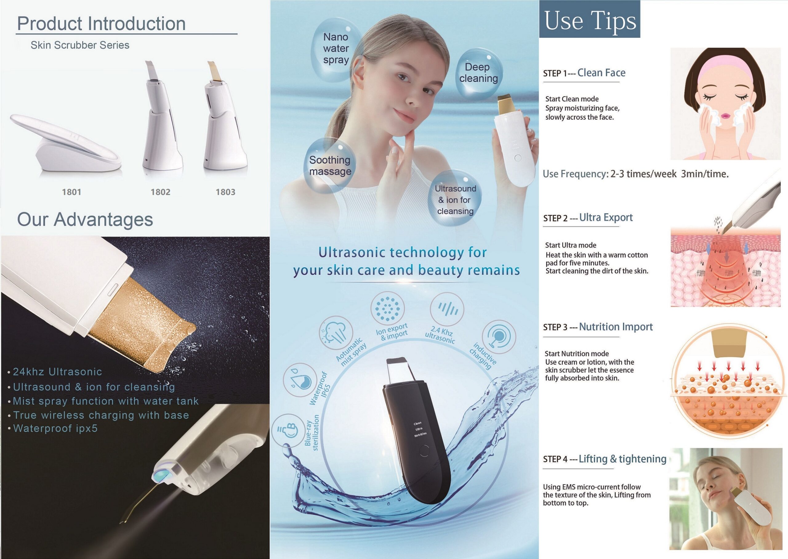 MULTI-MODE TOOL FOR DAILY SKINCARE: Features three helpful modes Clean, Ultra, and Nutrition designed to support everyday cleansing, deep care, and improved absorption of creams and serums.